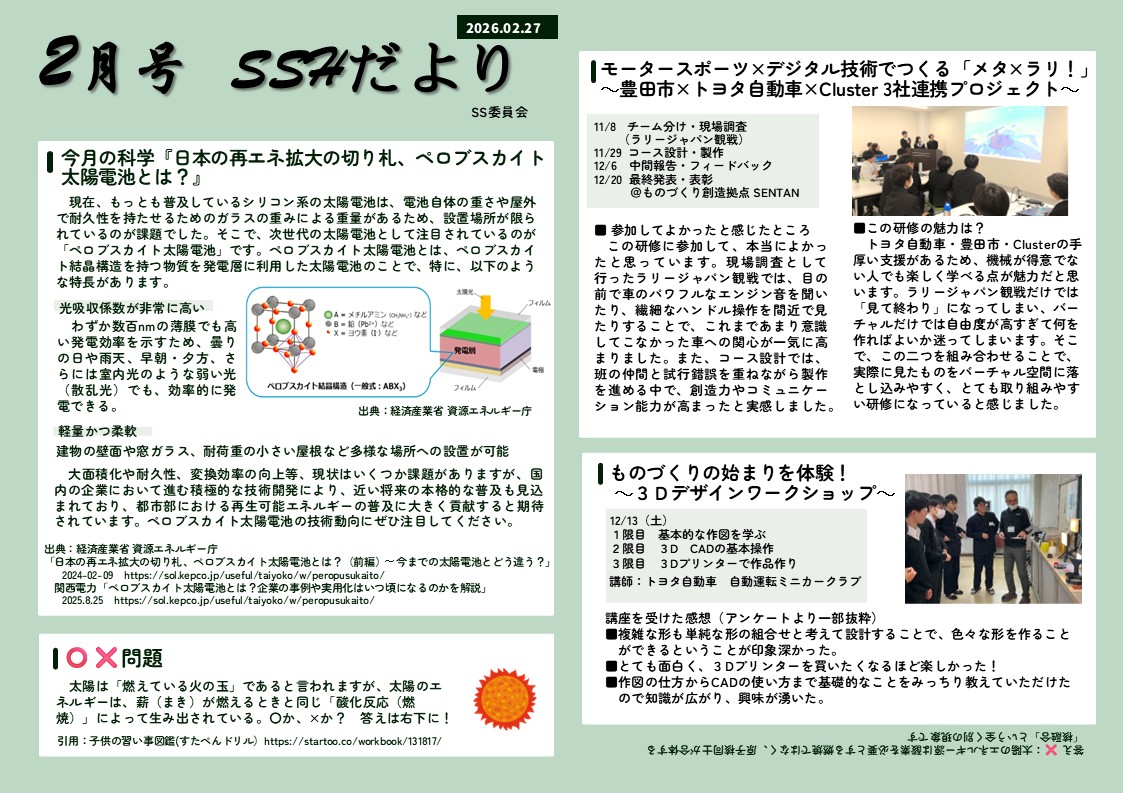 | タイトル | 令和7年度 SSHだより 2月号 |